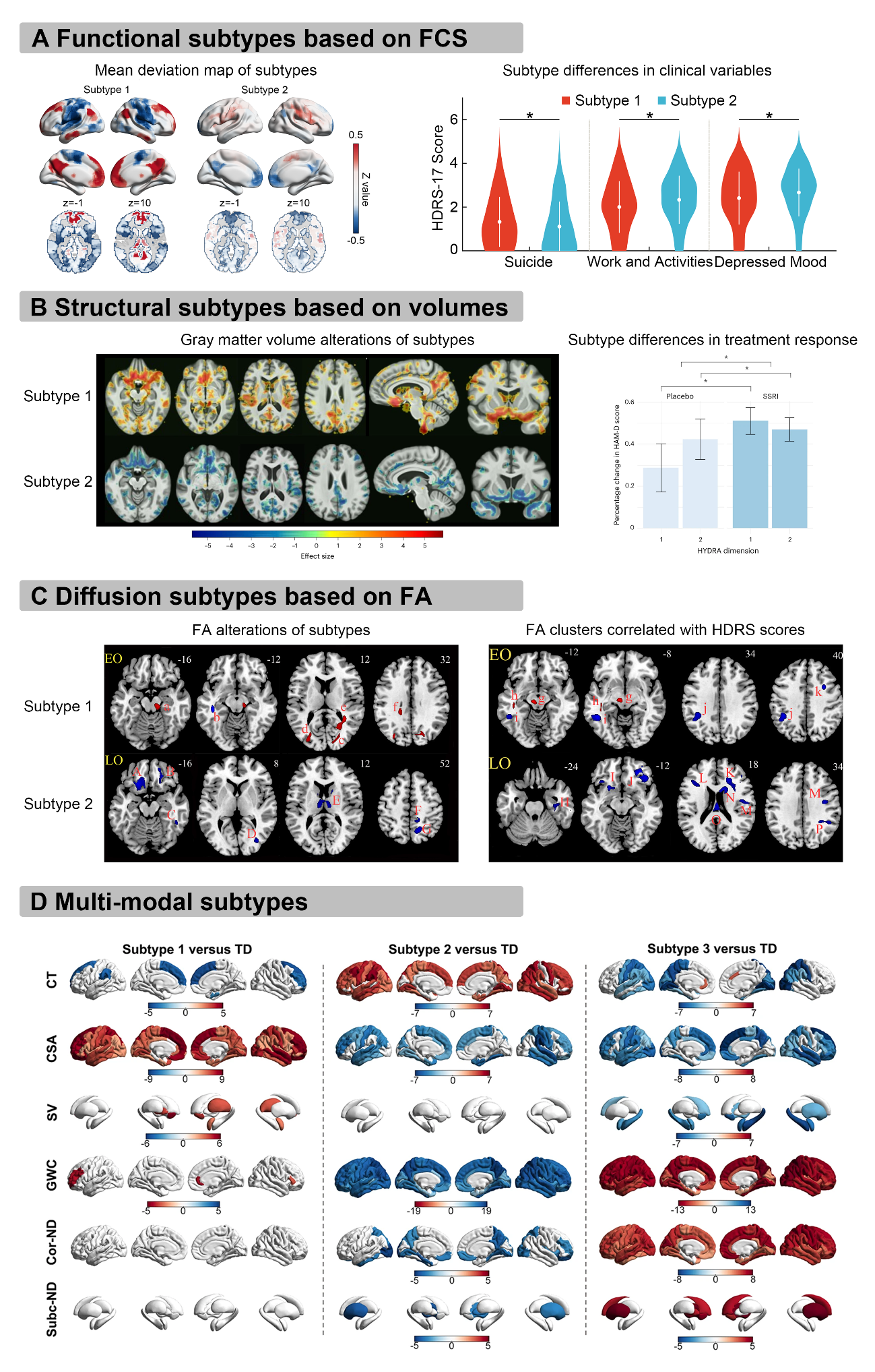 图2:不同模态的抑郁症神经生物学亚型