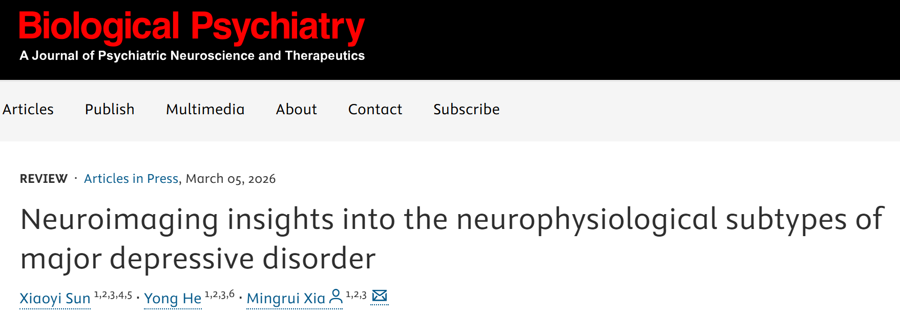 Sun X, He Y, Xia M (2026) Neuroimaging Insights into the Neurophysiological Subtypes of Major Depressive Disorder. Biological Psychiatry doi:10.1016/j.biopsych.2026.02.018.