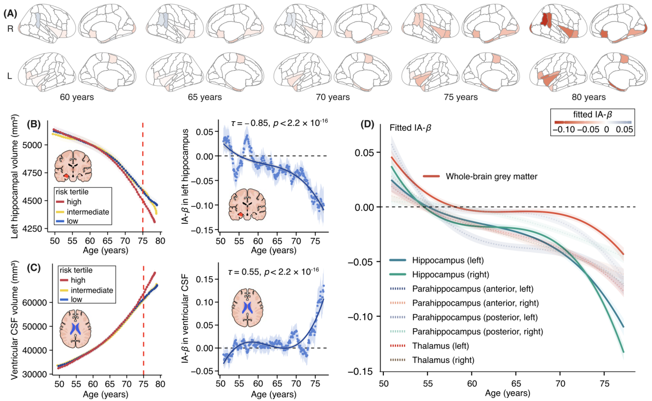 本研究结合大样本基因-影像数据集,实现了连续年龄段上遗传效应的时空追踪,揭示了AD遗传风险在健康老龄化群体中的动态演化过程。研究成果阐明 AD 多基因遗传风险对脑结构与认知功能在自然老化进程中的效应轨迹,为老年期认知衰退的早期预测与干预提供了科学依据:对于高遗传风险人群,60岁前即可进行脑结构监测,并结合生活方式及环境因素制定个性化防控策略。